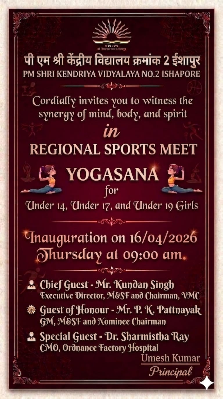 क्षेत्रीय खेल प्रतियोगिता (योगासन) 2026 के लिए आमंत्रण